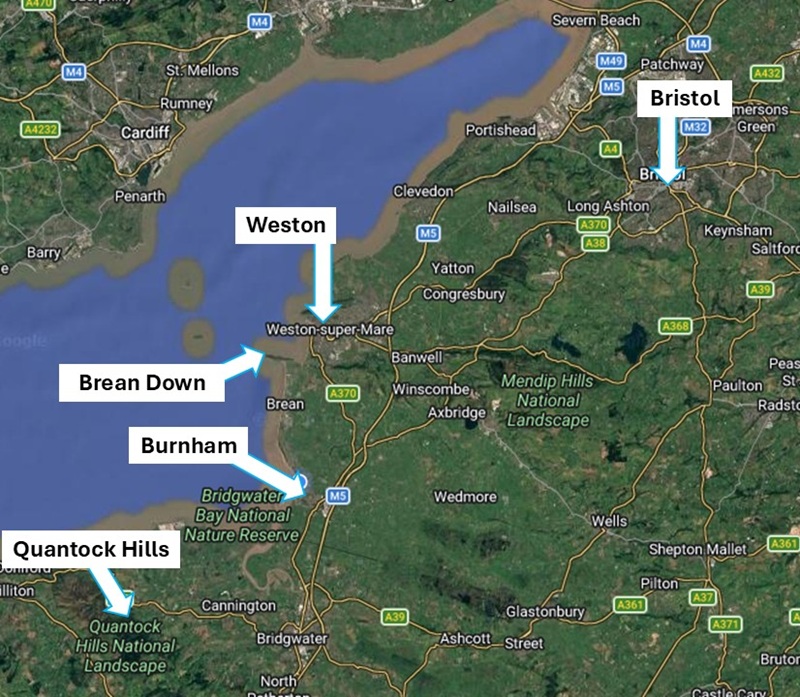 We showed off what is now our local area: Burnham, Quantock Hills, Brean Down, Weston Super Mare,