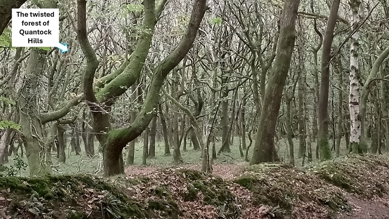 We stopped to admire the twisted moss-covered beech trees in the forest on the northern slope of Quantock Hills.