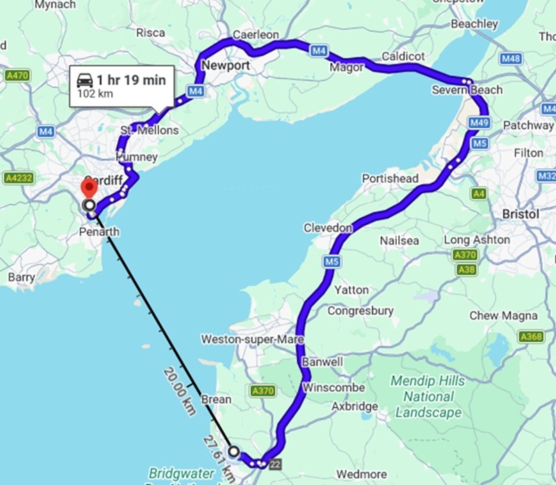 daytrip to Cardiff. That is a 100 km drive around the Bristol Channel.