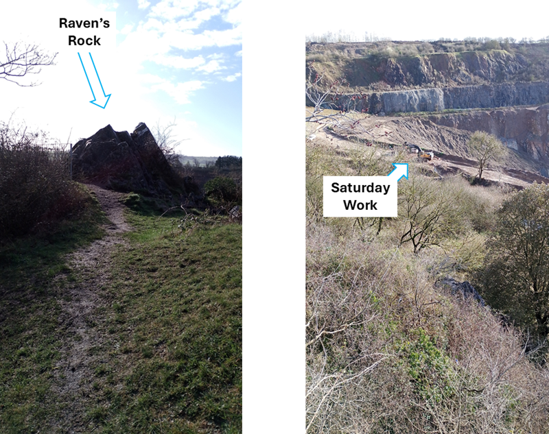 At Ravens Rock we found a good view of the limestone quarry and a nice log to sit on.