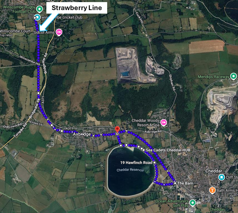 located right on the Strawberry Line trail. We turned left toward Cheddar.