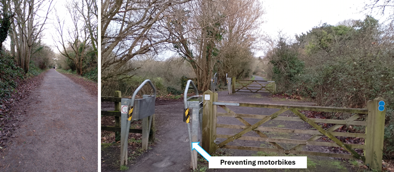 made to make it difficult for motorbikes to pass. Walking, running and cycling are