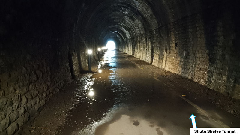 The tunnel is nicely lit and it is easy to step around the odd puddle without