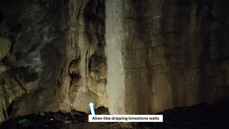 The walls were a bit creepy - alien-like dripping limestone walls made us keep walking to get out