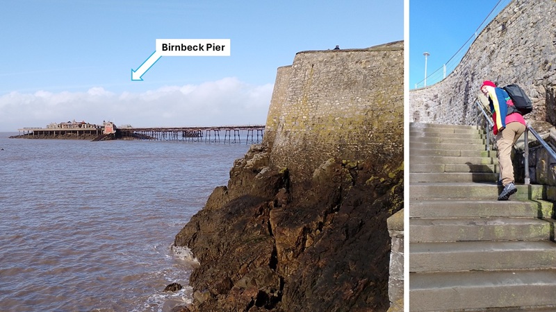 Next, we walked around the headland to Birnbeck Pier. Rob found some stairs to climb,