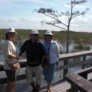 Hild, Alvaro, and Kristin at the Pa-Hay-Okee overlook looking out over the swamp and hiding from turkey vultures and crows.