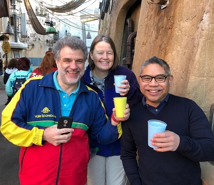 Galaxy's Edge: Blue or green/yellow milk with or without tequila and rum. We prefer the blue one.