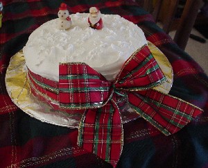 Rob made the Christmas cake in Ithaca and put the ribbon and marzipan decorations on in Denver.